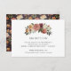 Conçue pour coordonner avec notre collection de mariage florale aquarelle Rustic Bloom, cette élégante carte de réception botanique présente une gerbe de fleurs de chrysanthème et de rose peintes à l'aquarelle dans des teintes automnales riches de marsala, de prune bourguignonne, de rose tendre et de crème, surmontant vos détails de réception de mariage en lettrage noir doux. Une carte d'encart d'invitation de mariage chic et élégante pour les mariages d'automne ou d'hiver.