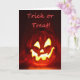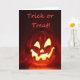Une carte de Halloween avec une orange allumée a découpé le citrouille dans l'obscurité. Ceci fait une carte gentille pour des enfants pour ces vacances.