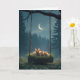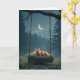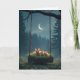 Trois jeunes lapins se nichent ensemble sur une balançoire recouverte d'herbe, accrochée à une branche d'arbre, sur un fond de forêt mystérieuse, avec une lune en croissant illuminant le ciel. Tout le texte peut être modifié.
