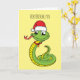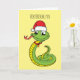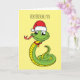 Carte Dessin d'un serpent vert mignon avec un chapeau de