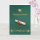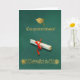 Image du diplôme sur l'arrière - plan vert riche avec bande décorative ornementale, capuchon de graduation et inscription "Félicitations" en regard de feuille d'or en détresse