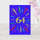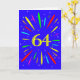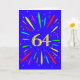 Une carte explosive de 64ème anniversaire ! Quelle merveilleuse façon d'envoyer des salutations d'anniversaire. Le numéro 64 en jaune vif avec une explosion de couleurs vives et d'étoiles.