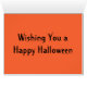 Cette grande carte de voeux est dotée d'une araignée noire éffrayante avec huit pattes poilues, des yeux jaunes avec de grands élèves noirs et sa bouche ouverte montrant ses crocs. Cette carte d'Halloween à l'araignée effrayante a un arrière - plan orange.
