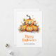 Carte d'Halloween à l'aquarelle mignonne avec des citrouilles et des fantômes amusants. Personnalisez facilement cette carte d'Halloween avec votre nom de famille et votre texte.