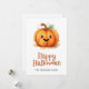 Bonne carte Halloween avec une jolie aquarelle illustrant un citrouille souriant. Personnalisez facilement cette carte d'Halloween pour les enfants avec votre nom de famille et texte.