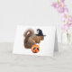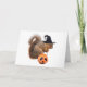 Un petit écureuil portant un casquette de sorcière noir se prépare à faire des tours ou à traiter. Jolie carte Halloween, ajoutez vos propres mots pour customiser.