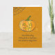 Cette carte amusante pour les enfants présente un jack-o-lanterne souriant, avec une toile d'araignée dans le coin supérieur gauche, et dit, "Ce petit Jack-o-lanterne amical est venu dire bonjour" À l'intérieur, "Et pour vous souhaiter une Halloween effrayant et amusante toute la journée." Fait partie d'une série de cartes citrouilles fantaisistes.