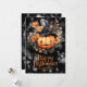 Bonne carte Halloween avec un citrouille avec un casquette noir et des fleurs. Personnalisez facilement cette carte d'Halloween avec votre nom de famille et votre texte.