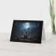Cette carte d'Halloween présente un design fantaisiste mais légèrement inquiétant, parfait pour la saison. L'image centrale est un lapin sombre et ombreux aux yeux orange brillants, assis au milieu d'une forêt mystérieuse sous la lumière d'une pleine lune. Le lapin tient un morceau de maïs de bonbon, entouré de davantage de maïs de bonbon éparpillés sur le sol de la forêt, ajoutant une touche ludique au cadre autrement effrayant.