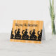 Bonne carte de voeux Halloween avec des rayures orange amusantes et chats noirs et silhouettes citrouilles, mignonette et amusante.