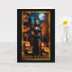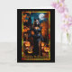 Cette magnifique carte d'Halloween présente une image captivante d'une femme habillée d'un costume de chat noir élégant, incarnant l'allure et le mystère de la saison. La femme se tient en toute confiance sous la lueur d'une pleine lune, entourée par des lances-valets brillantes et des feuillages automnaux vibrants. Son maquillage, aux traits pointus en forme de chat, ajoute une couche supplémentaire d'intrigue à son apparence déjà frappante. L'arrière - plan, dans un cadre sombre et atmosphérique et une demeure éffrayante en silhouette, complète parfaitement le thème général.