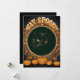 Carte d'Halloween. Joli chat noir avec des citrouilles. Restez effrayants !