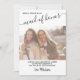Carte de proposition mariage personnalisée pour votre femme de chambre d'honneur avec votre propre photo personnalisée et le thème noir et blanc. Le modèle photo est configuré pour que vous puissiez ajouter votre propre image à l'avant. Le libellé est le suivant : "[nom de la servante], s'il vous plaît, soyez ma servante d'honneur" et "[nom du marié et je me marie, alors la question suivante est : serez-vous ma servante d'honneur ? [Signe et nom de la mariée]". Toute la formulation est modifiable, à l'exception de la première instance de "bonne d'honneur" qui est écrit en élégant script manuscrit.