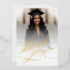 Célébrez votre graduation en style avec cette carte de remerciement à plat avec une typographie de script sophistiquée qui dit gracieusement "Merci" sur le devant. Montrez votre photo senior préférée pour une touche personnelle qui saisit parfaitement le moment. Le dos comprend un espace pour un message entièrement personnalisable pour express votre profonde appréciation aux amis, à la famille et aux proches. Imprimée sur des cartes de qualité supérieure au design moderne et élégant, cette carte est un moyen intemporel de remercier. Détails : Plat, carte recto-verso, Elegant script "Merci" design, Photo personnalisée à l'avant et message personnalisé à l'arrière. Ce carte de remerciements est parfait pour les célébrations au lycée, à l'université ou à l'université. Faites de votre gratitude un souvenir inoubliable avec une carte aussi spéciale que votre réussite.