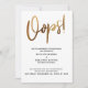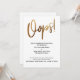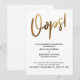 La particularité de cette suite est due à la police de caractères moderne et manuscrite utilisée pour les phrases d'accentuation. Dans ce morceau, la police de caractères manuscrite a été utilisée pour créer un graphique simple qui indique "Oops!", en grand et en gras. Le graphique a été amélioré par un effet doré lisse faux-métallique ajoutant une ambiance festive. Le texte du modèle dans mon texte de remplacement est conçu pour un mariage qui est reporté, mais si votre événement est annulé, ce design pourrait également répondre à ce besoin. Utilisez les champs du modèle pour ajouter vos informations personnelles et rendre ce design moderne unique vôtre, en utilisant la formulation qui vous convient ! L'arrière-plan peut être changé en n'importe quelle couleur que vous préférez. N'hésitez pas à nous contacter pour toute demande spéciale ou pour une aide à la personnalisation. // 105 //