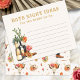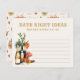 Carte Western Date Night Ideas. Encouragez les invités à partager des conseils amusants et sincères avec cette carte de Date Night Ideas magnifiquement conçue pour la future mariée. Dotée de délicates aquarelles illustrant des casquettes de cowgirl, des bottes et des cactus dans des neutrales douces et des roses ludiques aux accents chauds d'orange, d'or et de noir, chaque carte est soutenue par un motif occidental de coordination pour une touche de finition élégante. Aidez la mariée à démarrer sa vie de mariée avec amour et rire - laissez les idées entrer !