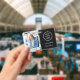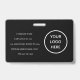 badge d'identification d'employé noir moderne, minimaliste, élégant. Vous pouvez ajouter votre logo, votre photo et vos détails.