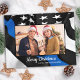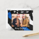 Envoyez Joyeux voeux de Noël à vos amis et à votre famille avec cette carte de Noël de la police de Ligne Bleue Mince - Drapeau américain aux couleurs du drapeau de la police, noir et bleu moderne. Personnalisez avec votre photo et votre nom de famille préférés. Ces cartes postales budgétaires de noël doivent être postées comme des cartes postales surdimensionnées, de sorte qu'elles peuvent encourir des frais d'affranchissement standard, mais elles n'ont pas besoin d'une enveloppe ou d'une étiquette d'adresse de retour. DROIT D'AUTEUR © 2020 Judy Burrows, Black Dog Art - Tous droits réservés. Budget Police Noël Ligne Bleue Mince Drapeau Fête Carte postale
