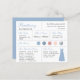 Une carte d'information de femme de ménage bleu et argent en poudre, comprenant des informations sur la date et l'emplacement du mariage, les couleurs du mariage, la fête de la mariée, la robe de femme de ménage et un message de proposition de femme de ménage. Le nom de la servante et les titres sont écrits dans un élégant script bleu poussiéreux. Dans le coin inférieur droit, il y a une robe bleu poudreuse. Au centre, il y a les couleurs mariages en cercles. Les couleurs, y compris la couleur de la robe mariage, peuvent être changées, à l'exception du cercle d'argent, qui est faux feuille d'argent.