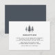 La carte de réception blanche et croquante correspond à nos invitations de mariage et d'événement rustiques chic en forêt hivernale, et présente des silhouettes de pins dans un bleu-gris fumé et marine. Personnalisez avec les détails de votre réception de mariage, y compris l'heure, le lieu et toute information supplémentaire.