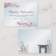 Carte d'information du registre de la fleur de cerisier japonaise Sakura. Ce design présente de belles branches de fleurs de cerisier japonais sakura rose contre un arrière - plan bleu ciel. Accentué de bambou. Personnalisez ce design personnalisé avec vos propres détails.