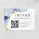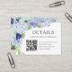 Cette belle carte bleue hydrangea mariage Details est parfaite pour votre mariage de printemps ou d'été. Partagez votre site Web mariage et votre code QR. Magasinez toute notre collection Blue Hydrangea !