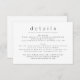 Il s'agit d'une carte d'insertion de détails de mariage boho moderne avec disposition minimaliste et police unique. Toutes les couleurs sont modifiables. // Pour les designs correspondants, recherchez "LENNOX" dans le magasin Sincerely By Nicole Zazzle. * Si vous aimez ce design mais ne le voyez pas disponible pour quelque chose que vous cherchez, n'hésitez pas à me contacter :)