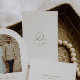 VERONA Sunset Orange Typographie, détails mariages fiche modèle boîtier. Caractéristiques, élégante fleur sauvage décoré détail crête sur le dos.