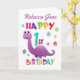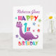 Une carte spéciale 1er anniversaire ! Cette carte de premier anniversaire éclatante présente un dinosaure violet, de jolies étoiles et un texte coloré. Un design mignon pour quelqu'un qui aura un an. Ajoutez le nom de l'enfant du 1er anniversaire à l'avant de la carte pour la customiser pour le garçon ou la fille spécial. Ensuite, changez le message à l'intérieur pour le personnaliser.