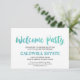 Cette carte d'insertion de bienvenue pour fête en calligraphie aquarelle est parfaite pour un mariage sur le thème de la plage tropicale. Le design amusant et énergique présente une jolie police de caractères en écriture aquarelle ombrée de vert sarcelle et de bleu aqua. Personnalisez cette carte de détail avec les informations de votre réception et incluez également l'adresse de votre site web de mariage !