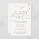 Cette carte d'encart de réception en calligraphie dorée romantique est parfaite pour un mariage simple. Le design classique moderne comprend des tourbillons fantaisistes et des fleurs fantaisistes avec une magnifique typographie de feuille d'or en faux champagne. Personnalisez cette carte détaillée de boîtier avec vos informations de réception et incluez également votre adresse de site mariage ! Remarque : Ce design ne comporte pas de véritable feuille d'or. C'est un graphisme de haute qualité fait pour ressembler à du papier doré.