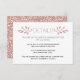 Cette carte d'insertion de mariage tendance met en valeur de belles branches avec des feuilles en paillettes de faux or rose et votre texte. Le dos est recouvert d'un motif composé de feuilles blanches sur fond de paillettes d'or rose.