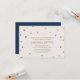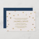 Cette carte d'insertion de réception de mariage à pois dorés est parfaite pour un mariage élégant. Le design simple présente des confettis en faux papier doré chic sur un fond de champagne crémeux et un dos bleu marine. Personnalisez cette carte de détail avec les informations de votre réception et incluez également l'adresse de votre site web de mariage !