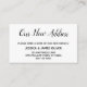 Gardez vos amis et votre famille à jour avec votre nouvelle adresse en utilisant ces cartes d'enceinte simples et élégantes. Les notes polyvalentes lisent "Notre nouvelle adresse" sur le devant et "Restez en contact !" sur le dos, en utilisant une police de caractères manuscrite décontractée et moderne. Utilisez les champs modèle pour ajouter tous vos détails afin de personnaliser ce design pour votre propre usage. Le type noir a été placé sur le blanc modifiable ; vous pouvez changer l'arrière - plan en n'importe quelle couleur que vous souhaitez. De même, les polices peuvent être modifiées si vous souhaitez modifier un peu plus la conception.