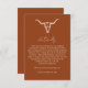 Carte d'insertion de détails de mariage western simple - une carte d'insertion simple de détails de mariage western avec un crâne de vache rustique en crème de dessert sur un fond de rouille/terracotta. Cette carte de détails vous permet d'expliquer facilement tous les détails à vos invités de mariage. Un code QR est sur le dos de la carte pour l'URL de votre site web de mariage.