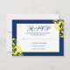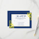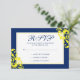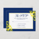 Une carte de réponse RSVP de mariage est offerte par un bleu marine préppy moderne avec une floraison jaune. Customisez facilement avec vos détails !