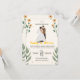 Célébrez l'amour avec cette faire-part de mariage douce et élégante avec une mariée et un marié illustrés encadrés par de délicats accents floraux et foliaires. Les tons chauds et terreux associés à une typographie ludique créent une ambiance charmant et moderne, idéale pour les couples qui souhaitent se détendre, jardiner ou mariage orienté famille.