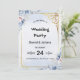 Célébrez l'amour avec style grâce à cette élégante carte d'invitation de mariage à motif floral bleu, dotée d'un fond pastel doux, d'accents de cadre doré orné et de compositions florales sophistiquées dans des nuances de bleu et de rose tendre. La typographie moderne associée à une délicate illustration aquarelle crée un design intemporel qui convient parfaitement aux célébrations de mariage formelles ou semi-formelles. Entièrement personnalisable avec les noms, la date, l'heure et les détails du lieu, cette invitation ajoute une touche personnelle à votre grand jour.