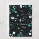 Carte d'invitation à la fête du 40e anniversaire dans un élégant motif floral noir et turquoise, délicat et élégant avec des tourbillons jouant. Personnalisable avec les détails de votre fête.