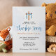 Célébrez l'occasion spéciale du baptême de votre bébé garçon avec notre carte d'invitation élégante et personnalisable. Le design présente un fond bleu aquarelle serein, orné d'une croix simple mais gracieuse, incarnant une touche douce et sincère. Le style minimaliste garantit un attrait intemporel, parfait pour commémorer cet événement sacré. Personnalisez facilement les détails pour créer une invitation unique et mémorable pour vos invités chéris.
