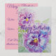 Carte d'invitation d'anniversaire à l'aquarelle Purple Pansy Art. Conçue à partir de ma peinture originale à l'aquarelle.
