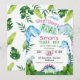 Carte d'invitation d'anniversaire dinosaure Trois Rex verte bleue