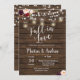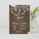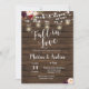 Automne de lumière de ficelle de pot de maçon dans la carte rustique d'invitation de douche de couples d'amour avec l'arrière - plan rustique et en bois.