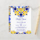 Cartes d'invitation de douche de mariage mexicaine vintage en carreaux jaunes et bleus Talavera azulejo, invitations imprimées de douche de mariage économiques, motif de carreaux bleus italiens méditerranéens, carreaux bleus Maiolica, motif de carreaux grecs
