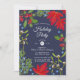 Élégante invitation de fête de vacances. Illustration avec des feuilles d'érable, du houx, du gui et du genévrier sur fond bleu foncé. Ajoutez votre texte.