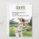 Es-tu prêt à frapper les verts ? Rejoignez-nous pour une soirée sur le thème du golf, avec un design aquarelle avec un golfeur. Cette carte d'invitation est parfaite pour tous les passionnés de golf qui veulent avoir une fête amusante et animée. Achetez le vôtre aujourd'hui et préparez-vous pour un bon moment de balançoire sur le parcours!