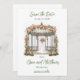 Cartes d'invitation de mariage à thème Gazebo avec Save the Date. Personnalisées avec vos prénoms et date de mariage pour informer vos invités de réserver votre date spéciale.