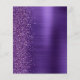 Le bord gauche de cette élégante carte d'invitation de mariage moderne présente une bordure de fausses paillettes violettes. Le texte personnalisable combine des polices de caractères cursives blanches, copperplate et italiques sur un fond en métal brossé violet. Le verso présente un motif assorti de paillettes et de métal brossé.