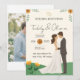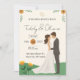 Invitez vos invités à célébrer votre histoire d'amour avec ce charmant faire-part de mariage illustré ! Ce design moderne présente un charmant couple de dessins animés enlacés, sur fond de douces collines vertes et de fleurs sauvages jaunes. La palette de couleurs chaudes et les polices de caractères manuscrites lui donnent une atmosphère unique, décontractée et amicale.