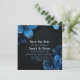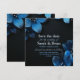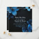 Carte de remerciement de mariage sombre avec fleurs bleues avec paillettes.